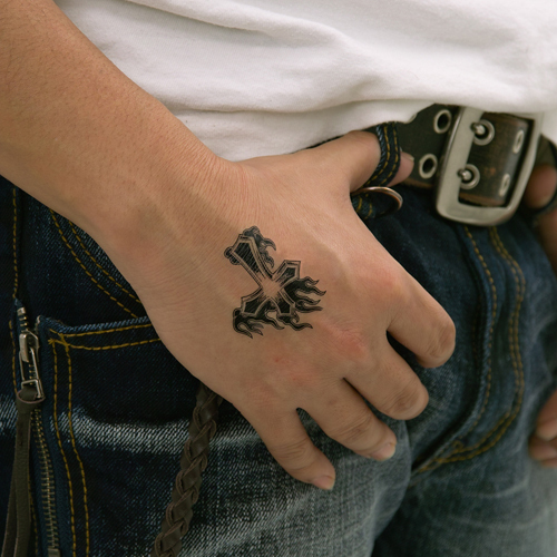 ■タトゥーシール 炎と十字架