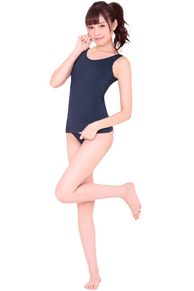 昔から変わらない紺一色のスク水で、あの頃にタイムスリップ!水抜き型ワンピースタイプで、純粋さをアピールできる水着コスチュームです。