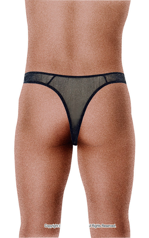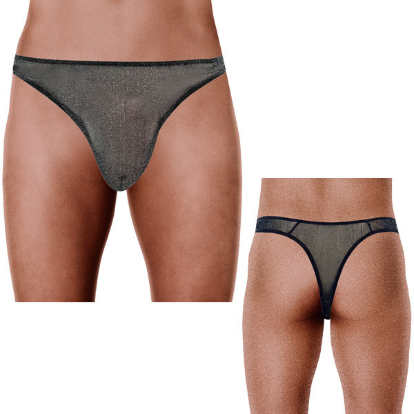 シースルー素材なので通気性も良好!シンプルなデザインながら、光り輝く素材とTバックで、しっかりセクシーさをアピールできる男性用ランジェリーです。