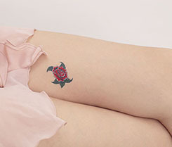 首すじ・胸元・腕・足首、アナタならどこに貼る?ただ一箇所に貼るだけでもセクシーに見せられる薔薇柄の本格的な刺青シールです。