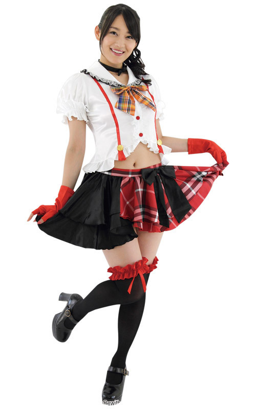 - ネクタイ付き・赤チェックのミニスカスクール制服