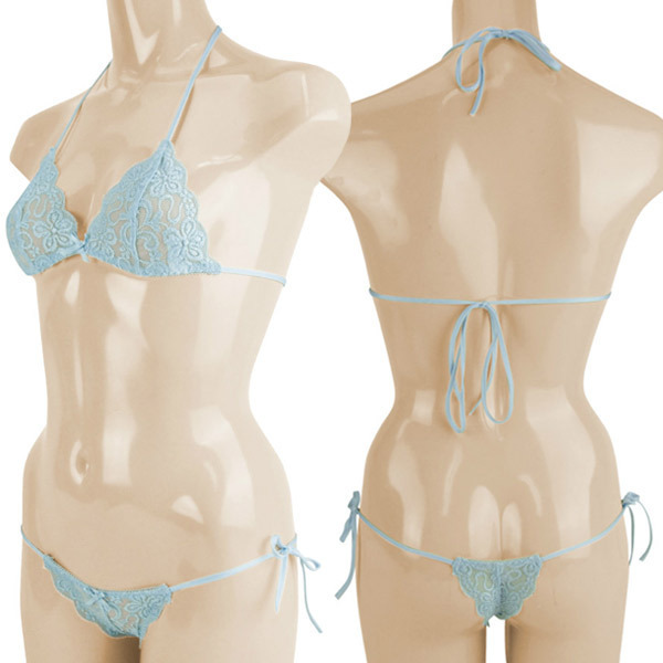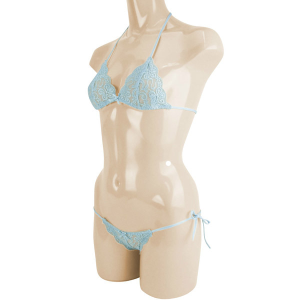 ■ストレッチフラワー総レースブラ&ショーツ サックス