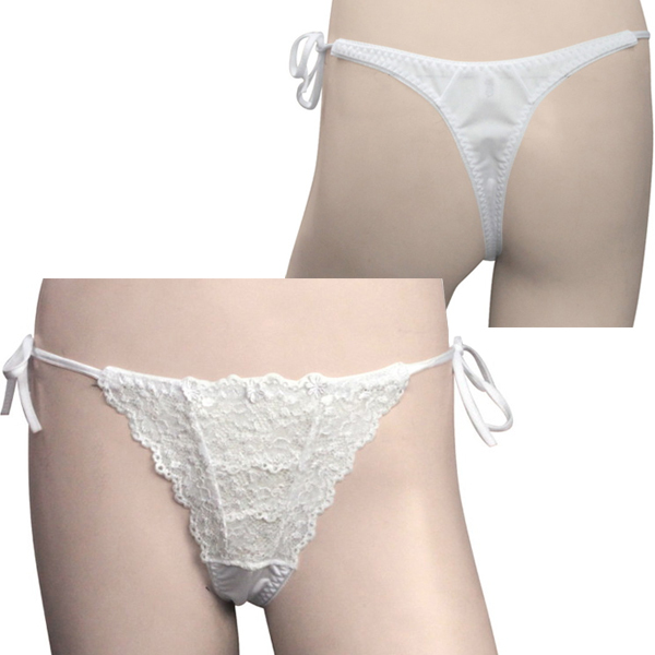 ■トリコット生地フラワーレース脇紐オープンTバック ホワイト