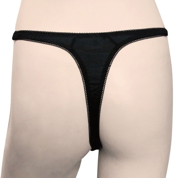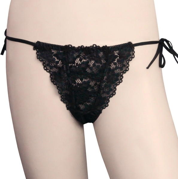 ■トリコット生地フラワーレース脇紐オープンTバック ブラック