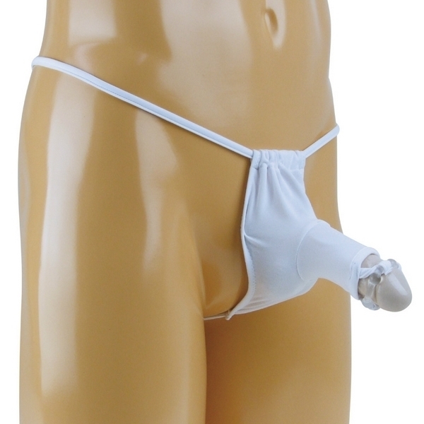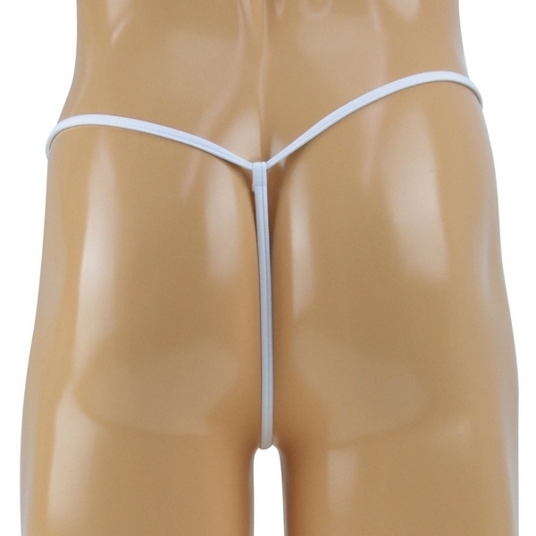 ●すっきりとしたホワイトカラー●幅を自由に調節できるふんどし風●体にフィットするストレッチ生地●筒状のエレファント型ポケット●先端に透明のパワーリング付き●Tバックのストリング仕上げ●メンズ用Mサイズ・日本製。