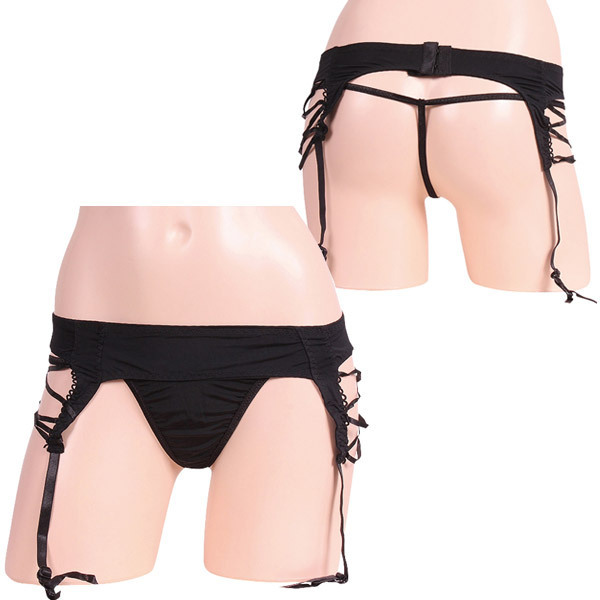 両サイドに細めのリボンをクロスに配置したセクシー系ガーターセット。