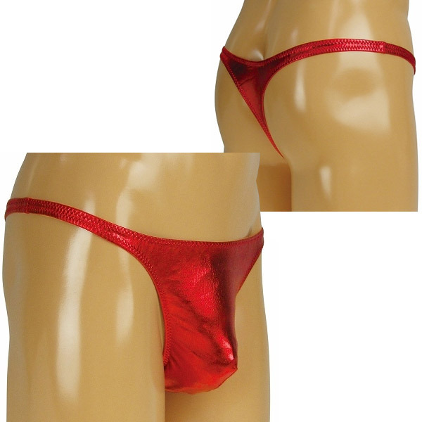 シャイニーなメタリックレッドカラーのTバックタイプ!華奢なサイドストリングとド派手なカラーで、セクシーアピールも存在感も抜群の男性用ランジェリーです。