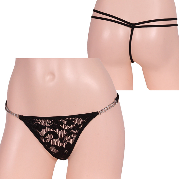 ブッラックの荒目のデザイン!ストレッチネットにダイアモンドの輝きを誇るチャームを組み合わせた華やかなデザインTバック。