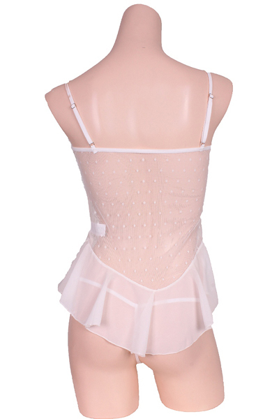 ■フリルとレースで可愛さ増しベビードール&Tバックセット ホワイト