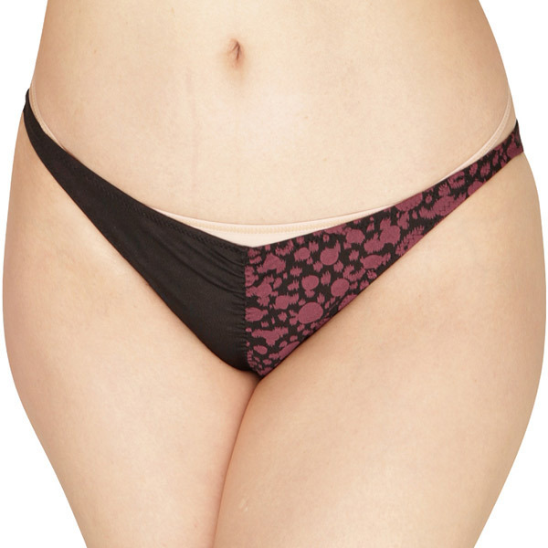 女性の中に秘められたワイルドさをアピールしたいときに、アニマル柄を取り入れたこのランジェリーはいかがでしょうか?左右非対称のアシンメトリーで、前から後ろにかけて入っている縦線が見る人の視線をキャッチ!目でその割れ目を追ってしまいそうなデザインとなっています。