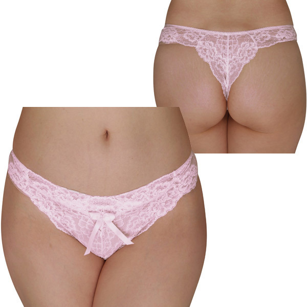 総レース仕立てのTバックショーツで下半身を美しく飾ります♪ピンク色のレース地にセンターにはちょこんとリボンが一つ。