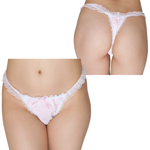 白レースで美しく縁取られたコットン生地素材の日本製Tバックショーツ。