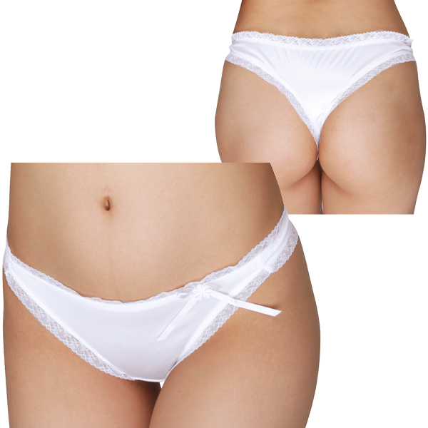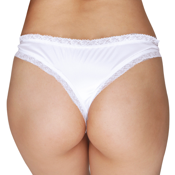 レースやフリル等のかわいいのが好きな女性におすすめ!純白の肌触り抜群な日本製Tバックショーツ♪学園もののラブコメでよくヒロインのパンチラシーンがありますが、そんなヒロインが穿いていそうなほど白くて艶やかなランジェリー。