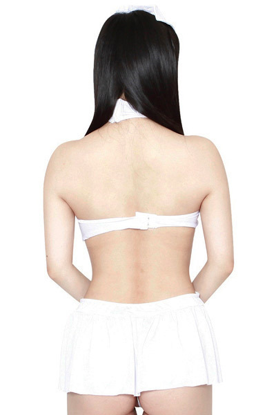 コチラはミニ丈ワンピとTバック、ナースキャップ風カチューシャの3点セット!