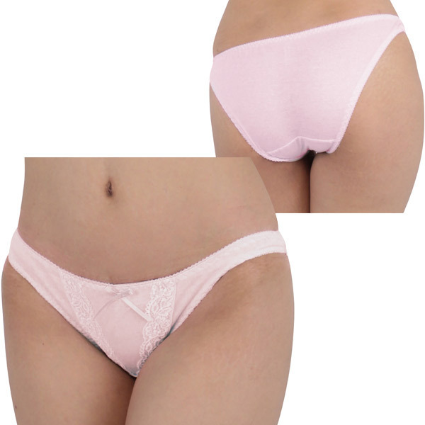 肌触りの良いコットン生地を使用したピンクカラーの日本製フルバックショーツです♪フロント部分にピンクのリボンとレースをあしらった可愛らしいデザイン。