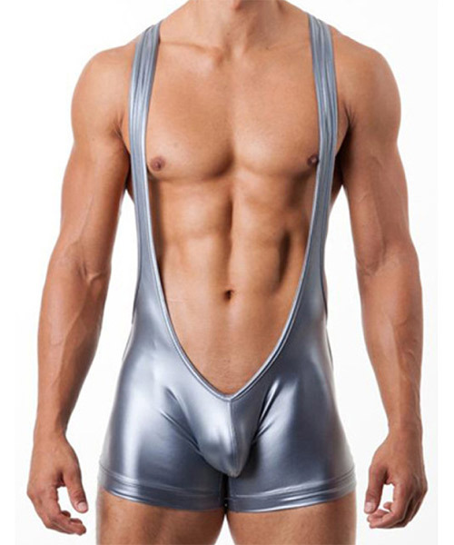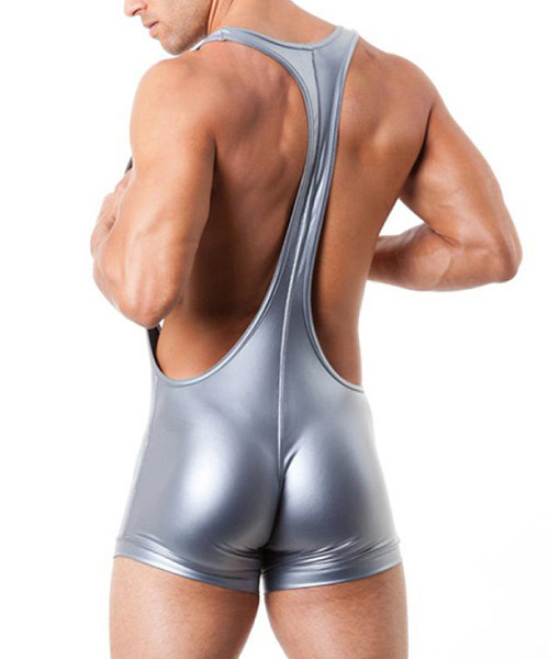 女性が一番興奮する男性の体の筋肉を強調するメタリックシルバーのサスペンダー下着。