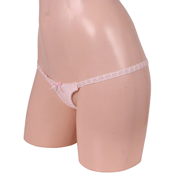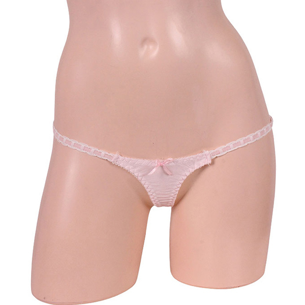 ギリギリまで攻めた極小生地で大胆に肌を魅せつつ、淡いピンクカラーを取り入れ可愛らしく仕上げたTバックです♪