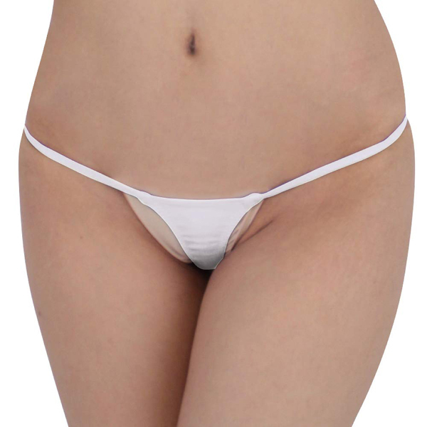 極小サイズの光沢生地で大胆に攻める日本製Tバック(白)。