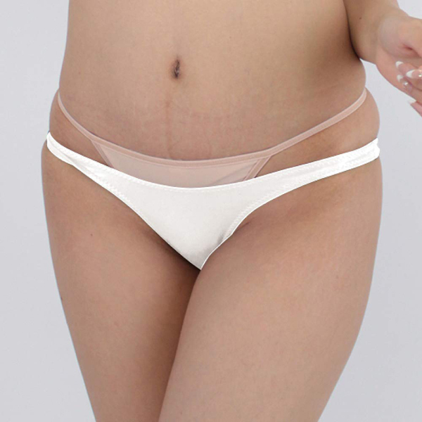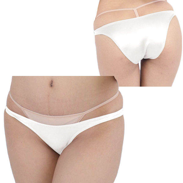 艶やかな光沢が身体のラインを描き出すストレッチ生地の日本製ハーフバック(白)。