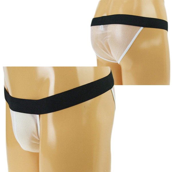 太めの黒ゴムと透け感のある生地で逞しさを演出する日本製フルバック(白)。