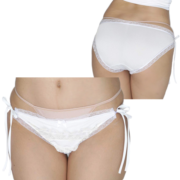 2段にあしらったレースで愛らしく見せつつ、サイドの紐結びで甘く誘惑するレディース用の紐ショーツです♪