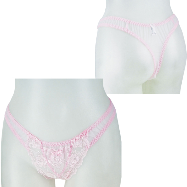花柄の刺繍レースと透けて見える極薄生地で素肌を彩る日本製Tバック(ピンク)大きめ2Lサイズ。