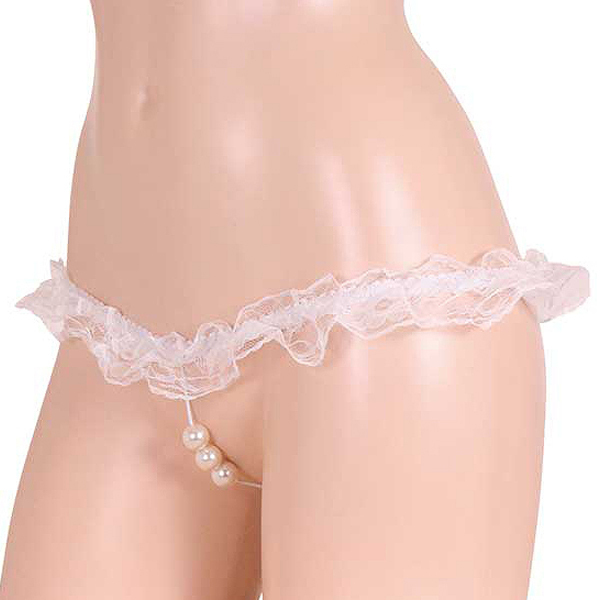 ■エロさ急上昇の大粒3連パールひもパン ホワイト