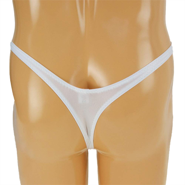 ギリギリまで魅せるハイレグ仕様の男性用Tバック(白)。