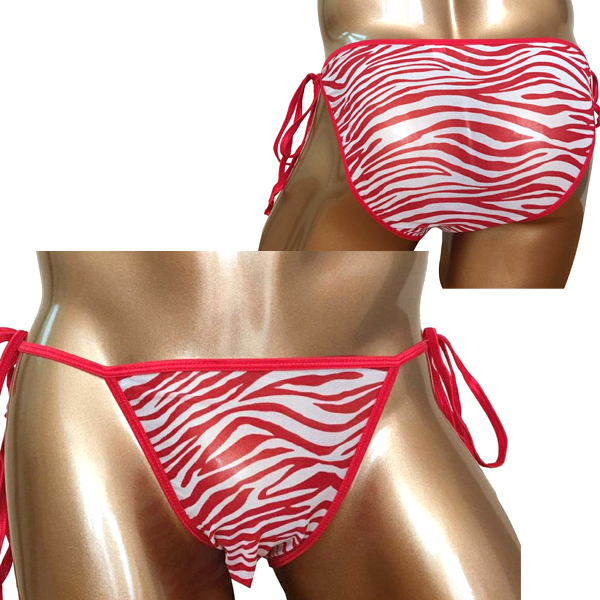 ワイルドなゼブラ柄と情熱的な赤でセクシーに魅せるメンズ用紐パンツ(レッド)!洗濯する際は網ネットに入れるか、優しく手洗いで洗濯するようお願いいたします