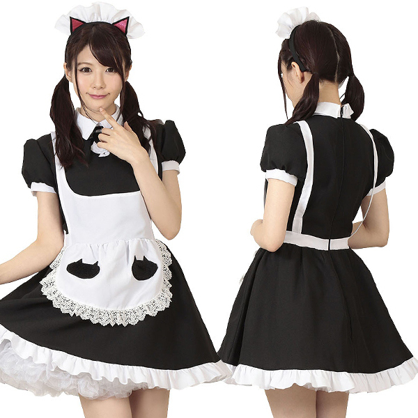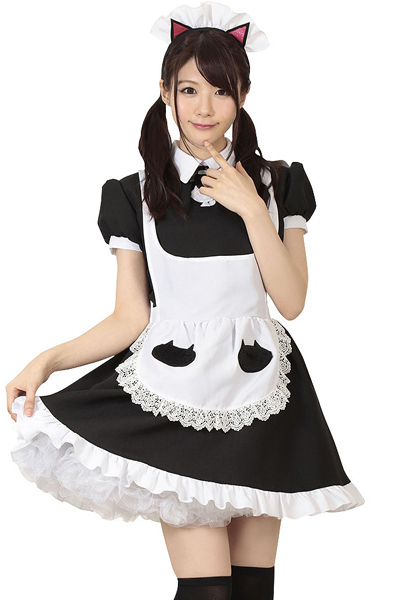 白エプロンや胸元、カチューシャにも猫!可愛いが詰まった愛嬌たっぷりの萌え系コスチュームです。