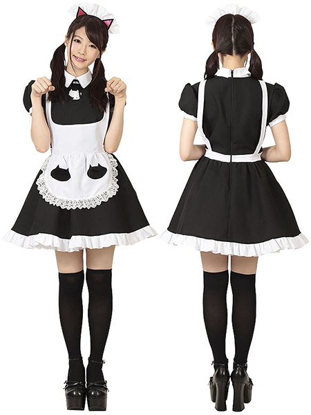 家内安全を招く黒猫メイド♪猫マークを至る所にちりばめた可愛いメイドコスプレ。