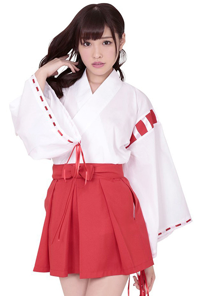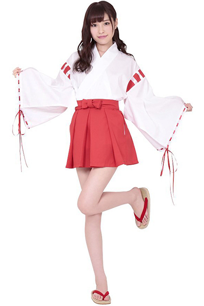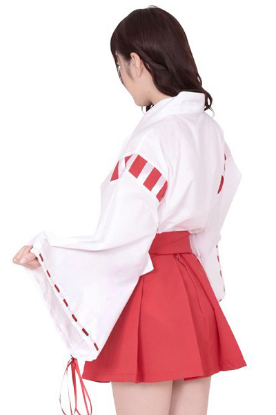 袴風ミニ丈スカートが可愛い!あの大人気コスプレ「夢のなかの巫女ちゃま」に大きめサイズが登場♪白い着物に赤のパイピングが印象的な和装コスプレ。