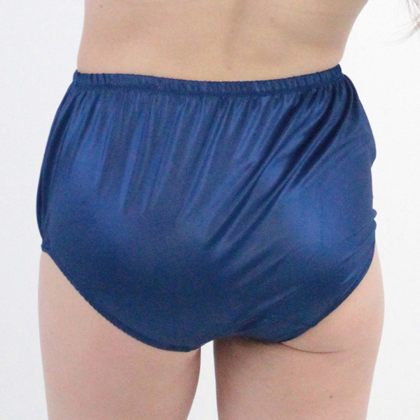 ゆるりとしたシルエットがどこか懐かしさを感じさせる光沢のある日本製ブルマ(紺)。