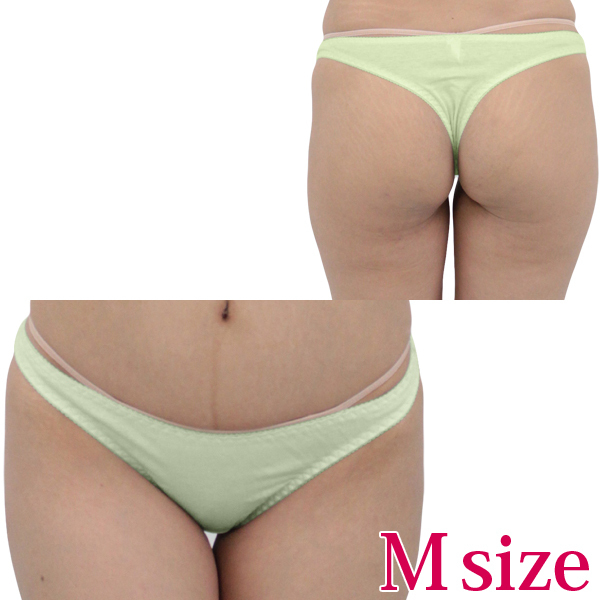 その日の気分によって選べるシンプル無地の女性用Tバック黄緑。
