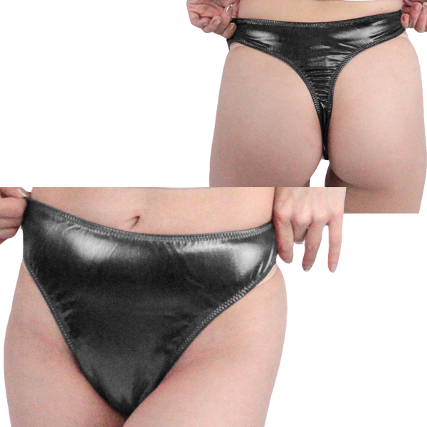 キラキラと輝くメタリックブラックの日本製Tバック。