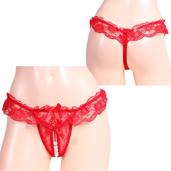 ■キュンキュンうずく大粒パールオープンショーツ レッド