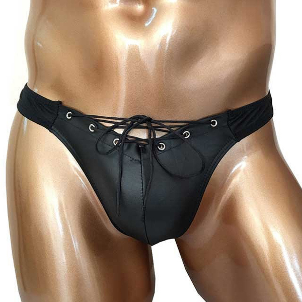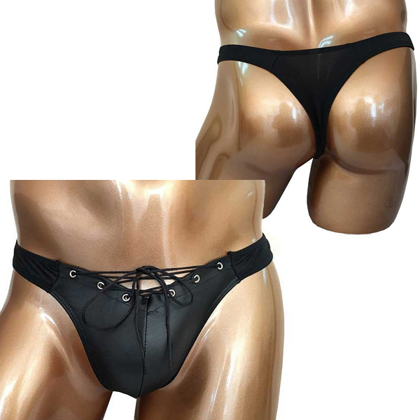 ハトメ金具に紐を通しレースアップしたスタイリッシュなデザイン♪バックはタンガデザインで、引き締まったお尻をアピールします。