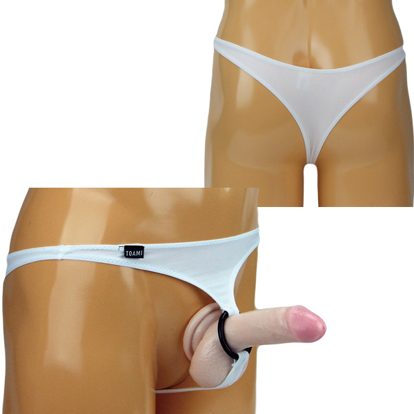 ■メンズ 2wayストレッチ生地大リング付きTバック ホワイト