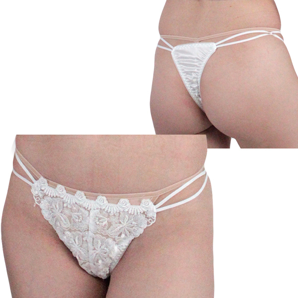 ■肌触りのいい光沢レース付き脇2本ゴムTバック ホワイト