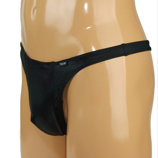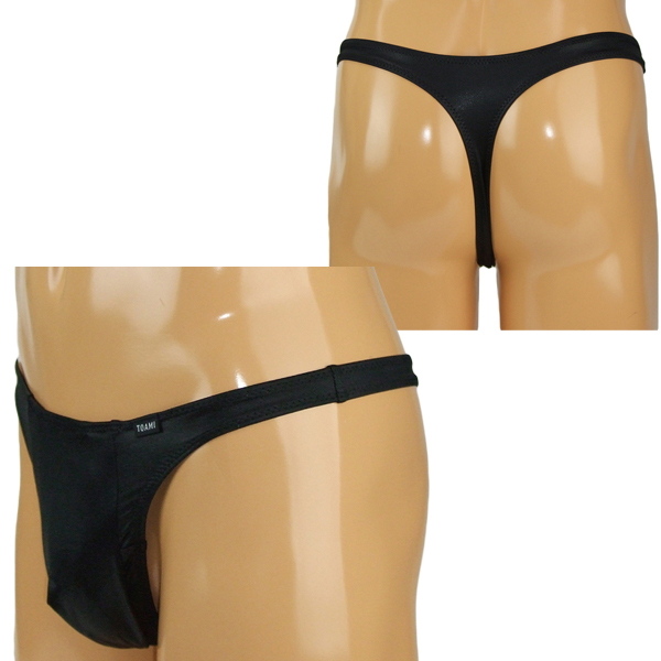 ■メンズ 光沢ストレッチ生地玉袋付きTバック Mブラック