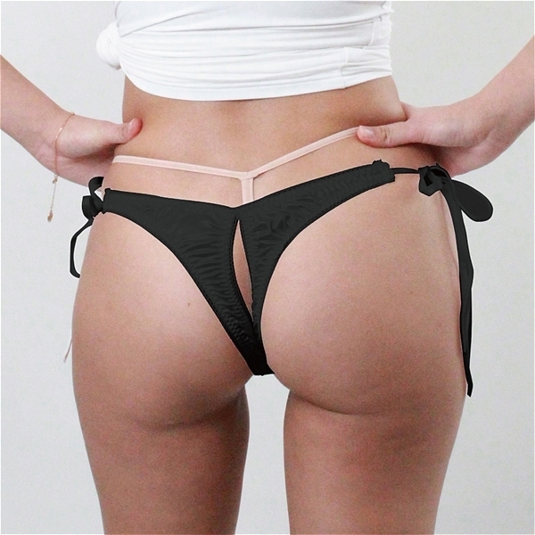 ■光沢が有り肌触りの良い生地レース付き脇ヒモ股ワレTB Lサイズ ブラック
