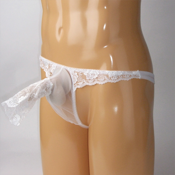 ■メンズ スケスケシースルー素材のセクシーな生地にレース付きぞうさん貫通型TB ホワイト