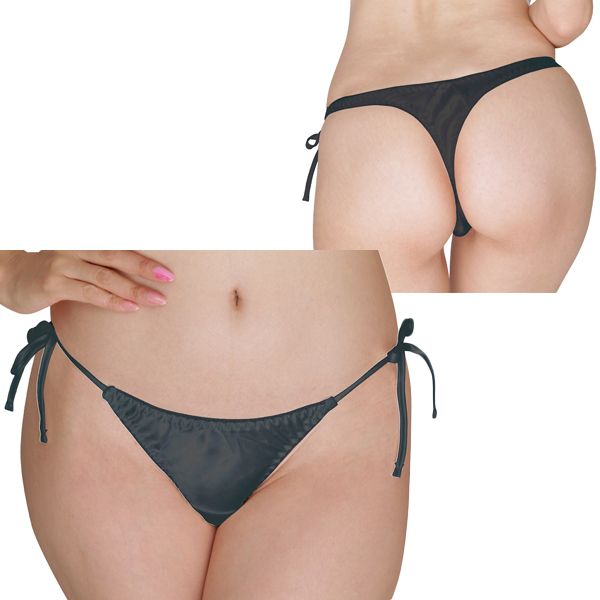 ■光沢サテン脇紐Tバック 2Lサイズ ブラック