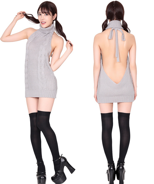 ホルターネックでサイドとバックが大きく開いたグレーカラーの人気ニットセーター。