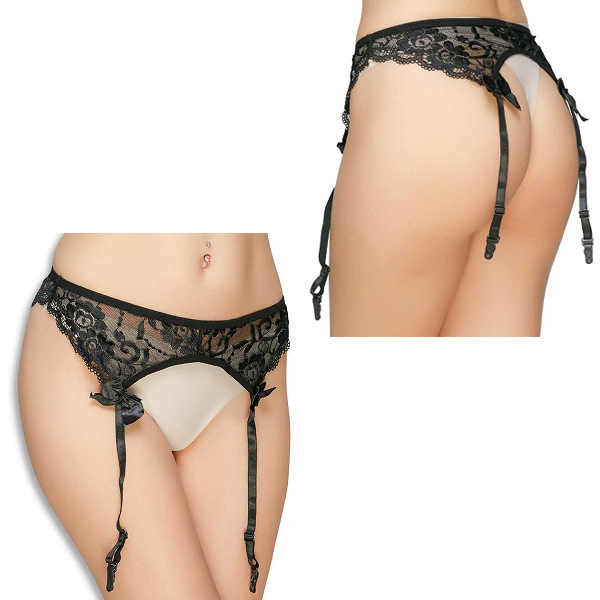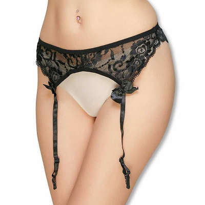 ■定番人気のフラワーレースガーターベルト (ブラック)