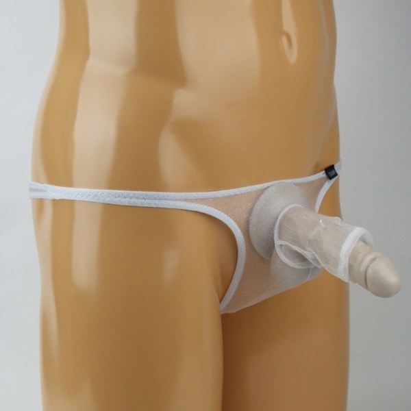 ■メンズ キラキラスケスケ生地ゾウさんイボイボリング付きTバック (ホワイト)