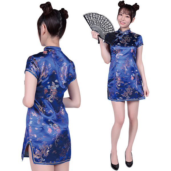 両サイドにスリットが入っているのでチラ見せもできるミニスカ丈なチャイナコスチュームです。