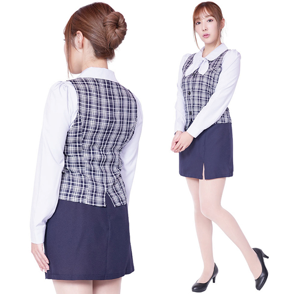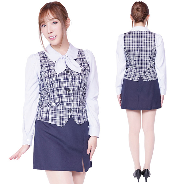 B75〜85cm・W58〜67cm・着丈58cm・肩幅38cm・袖丈58cm・スカート丈40cm セット内容:長袖ブラウス、ベスト、スカート、リボンタイ