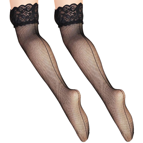 網タイプのニーハイストッキングにレースをあしらった、セクシーさ高まるストッキング。