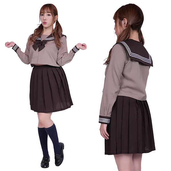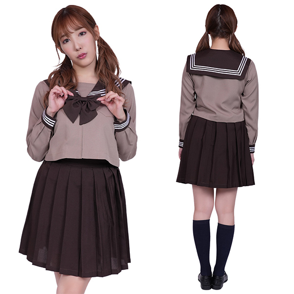 着丈43cm・肩幅37cm・袖丈54cm・B94cm〜98cm・スカート総丈47cm・W66cm〜70cm セット内容:長袖セーラー服、スカート、リボンタイ